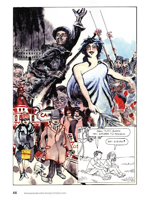No, perché quella di cui parliamo non è una rivista di fumetti nel senso che abbiamo sempre dato a questa definizione. Cosa la distingue dagli Alteralter, Eternauta e Orient Express? Indubbiamente i contenuti. Le riviste di fumetti degli anni settanta e ottanta ospitavano infatti narrativa a fumetti, riuscendo a trasportarci in mondi fantastici e a farci conoscere personaggi incredibili impegnati in storie dalla più diversa ambientazione e genere. La rivista di Internazionale non è questo. In nessun modo. E' invece un news magazine (l'inglese sembra essere d'obbligo, ormai, per parlare di fumetti) che ha scelto il linguaggio dell'arte sequenziale al posto dell'accoppiata parole&foto dei giornali tradizionali, ma quelli che ospita sono comunque articoli, sia pure in forma grafica. E questo, per l'appassionato di fumetto, mi appare essere il limite maggiore della pubblicazione, destinata più ai lettori dell'Espresso o di Panorama che a quelli di Corto Maltese o Terry e i pirati.